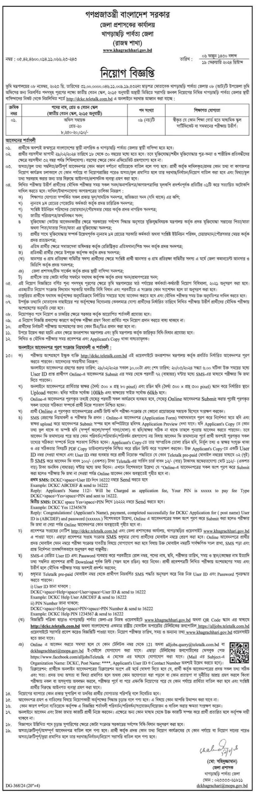 খাগড়াছড়ি জেলা প্রশাসকের কার্যালয় নিয়োগ ২০২৪