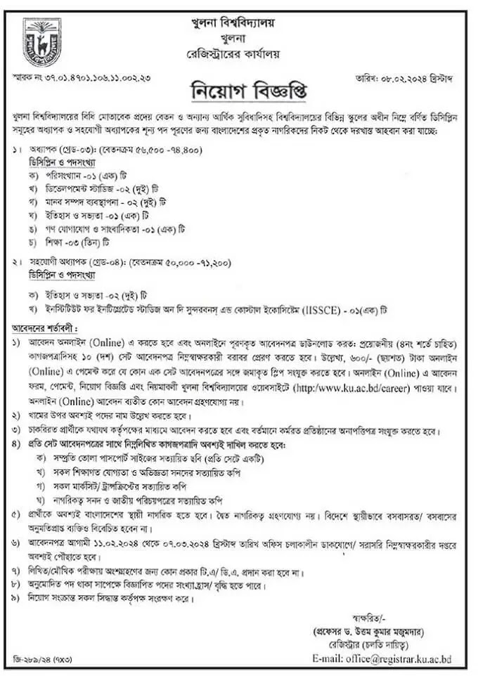 খুলনা বিশ্ববিদ্যালয় নিয়োগ ২০২৪
