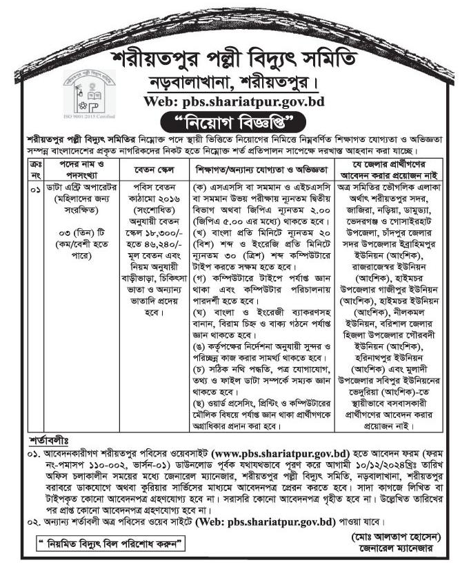 শরীয়তপুর পল্লী বিদ্যুৎ সমিতি নিয়োগ ২০২৪